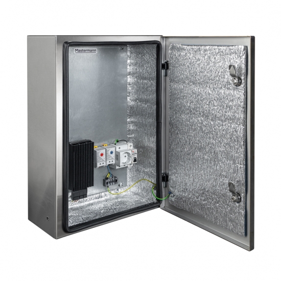 МАСТЕР-3УТП-Н Климатический навесной шкаф из нержавеющей стали предназначен для использования в любых климатических условиях на улице (-55°С +50°С). С защитным реле от "холодного пуска", IP 66. Вес: 7 кг. Нерж. сталь сатинированная AISI304.