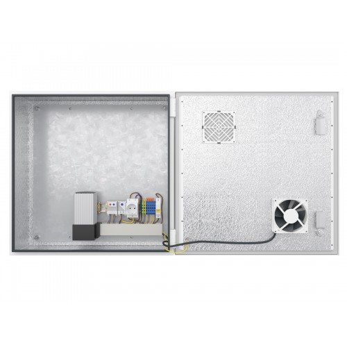 Климатический термошкаф МАСТЕР 5 УТПВ-А предназначен для установки электрооборудования, которому необходима защита от неблагоприятных условий окружающей среды (класс защиты IP66) и поддержания заданного температурного режима при эксплуатации этого оборудования. Бюджетное, простое и качественное решение для безопасного использования любого электрооборудования в сложных климатических условиях от -50 до +50 градусов. Шкаф оснащен конвекционным обогревателем, вентиляционными панелями (с вентилятором), а так же имеет встроенное реле предстарта, позволяющее безопасно запускать оборудование, установленное в термошкаф, даже при временном пропадании электропитания. Для утепления шкафа используется порилекс НПЭ толщиной 10 мм, нагреватель, номинальной мощностью в 250 ВТ, позволяет поддерживать безопасную температуру внутри шкафа.