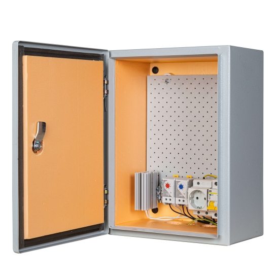 Комплектация: утеплитель из пенополистирола, замок 1 шт, ключ 1 шт, монтажная плата 1шт, гермовводы 2шт, розетка 1 шт, автоматический выключатель 1шт, термореле 1шт, реле предстарта 1 шт, нагреватель мощностью в 30 Вт 1шт.