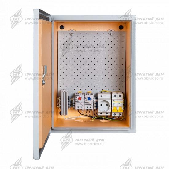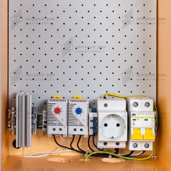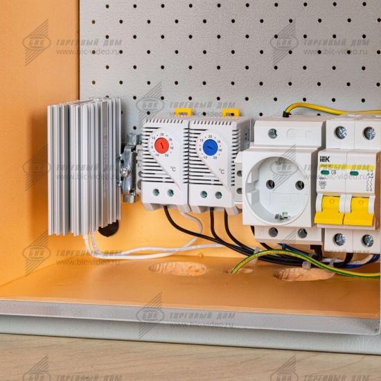 Термошкаф оснащен системой автоматического поддержания заданной температуры и относительной влажности, обеспечивающей безопасную работу размещенного в нём оборудования при температуре окружающего воздуха от -55°С до +50°С со степенью защиты IP66.