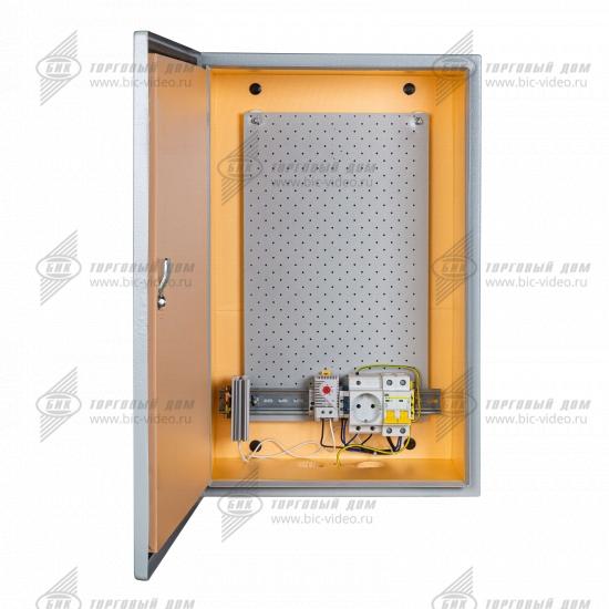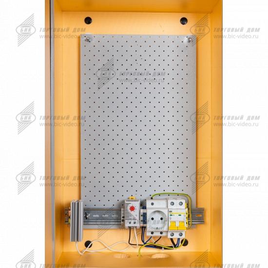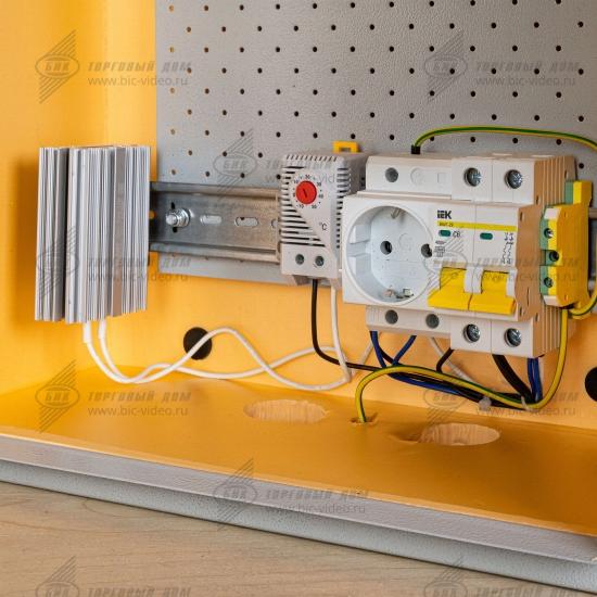 Термошкаф оснащен системой автоматического поддержания заданной температуры и относительной влажности, обеспечивающей безопасную работу размещенного в нём оборудования при температуре окружающего воздуха от -55°С до +50°С со степенью защиты IP66.