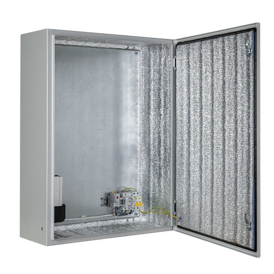 Термошкаф оснащен системой автоматического поддержания заданной температуры и относительной влажности, обеспечивающей безопасную работу размещенного в нём оборудования при температуре окружающего воздуха от -55°С до +50°С со степенью защиты IP66.