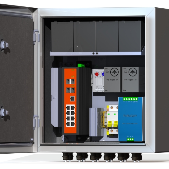 Mastermann 8 УТП 8К ГЗ АКБ 7А Коммутационный термошкаф предназначен для использования в любых климатических условиях на улице (-60°С +50°С). С защитным реле от "холодного пуска", габариты (внешние): 350х400х210 (ШхВхГ). Степень пылевлагозащиты IP66. Корпус стальной 1,5 мм. Настенное крепление. Входное напряжение 220В.