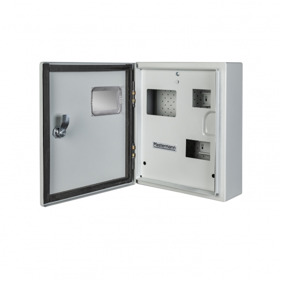 Предназначен для установки как однофазного, так и трехфазного электронного счетчика и 7 однополюсных автоматических выключателя, для навесной установки, с металлической дверцей (дверца со стеклом).