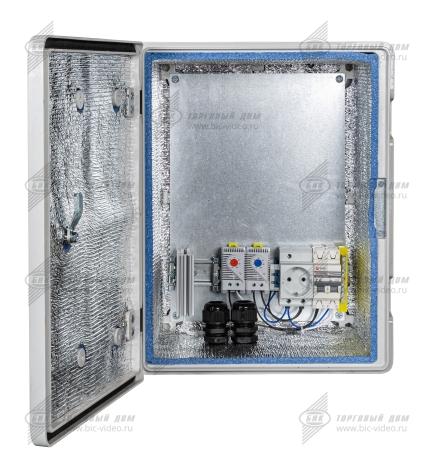 Комплектация: утеплитель из Порилекса, замок 1 шт,ключ 1 шт, монтажная плата 1шт, гермовводы 2шт, розетка 1 шт, автоматический выключатель 1шт, термореле 1шт., реле предстарта 1 шт., нагреватель мощностью в 50 Вт 1шт.