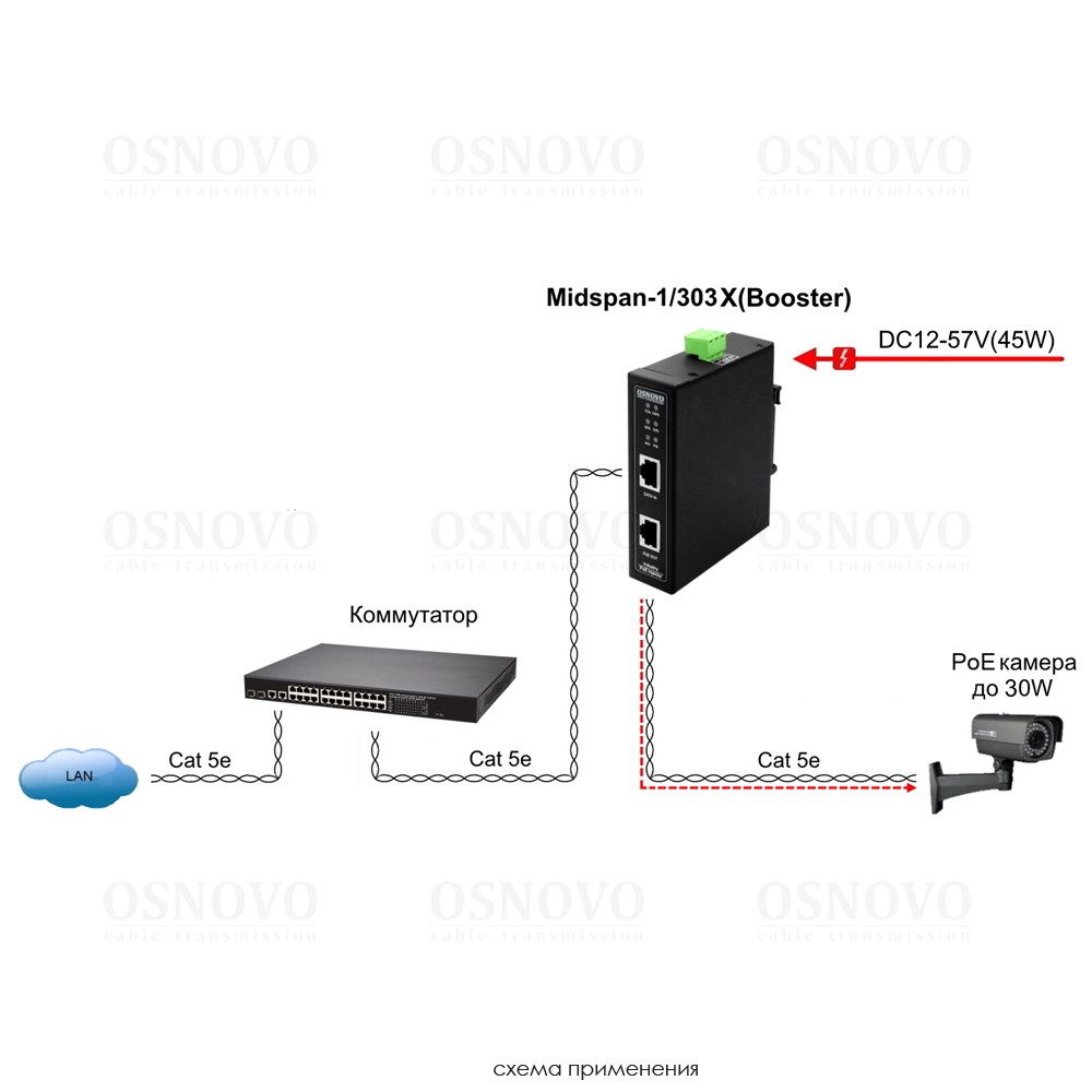 Midspan-1/303X(Booster) Промышленный PoE-инжектор