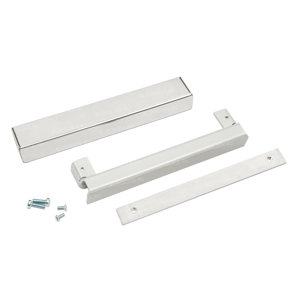 Монтажный комплект MK 400S-GL предназначен для крепления якорной части замка ALM-400S на полотно стеклянной двери и может использоваться как для дверей, открывающихся в одну сторону, так и для маятниковых дверей (открывающихся в обе стороны). Использование комплекта для маятниковых дверей возможно только при условии обеспечения минимальной скорости прохождения среднего (закрытого) положения двери.