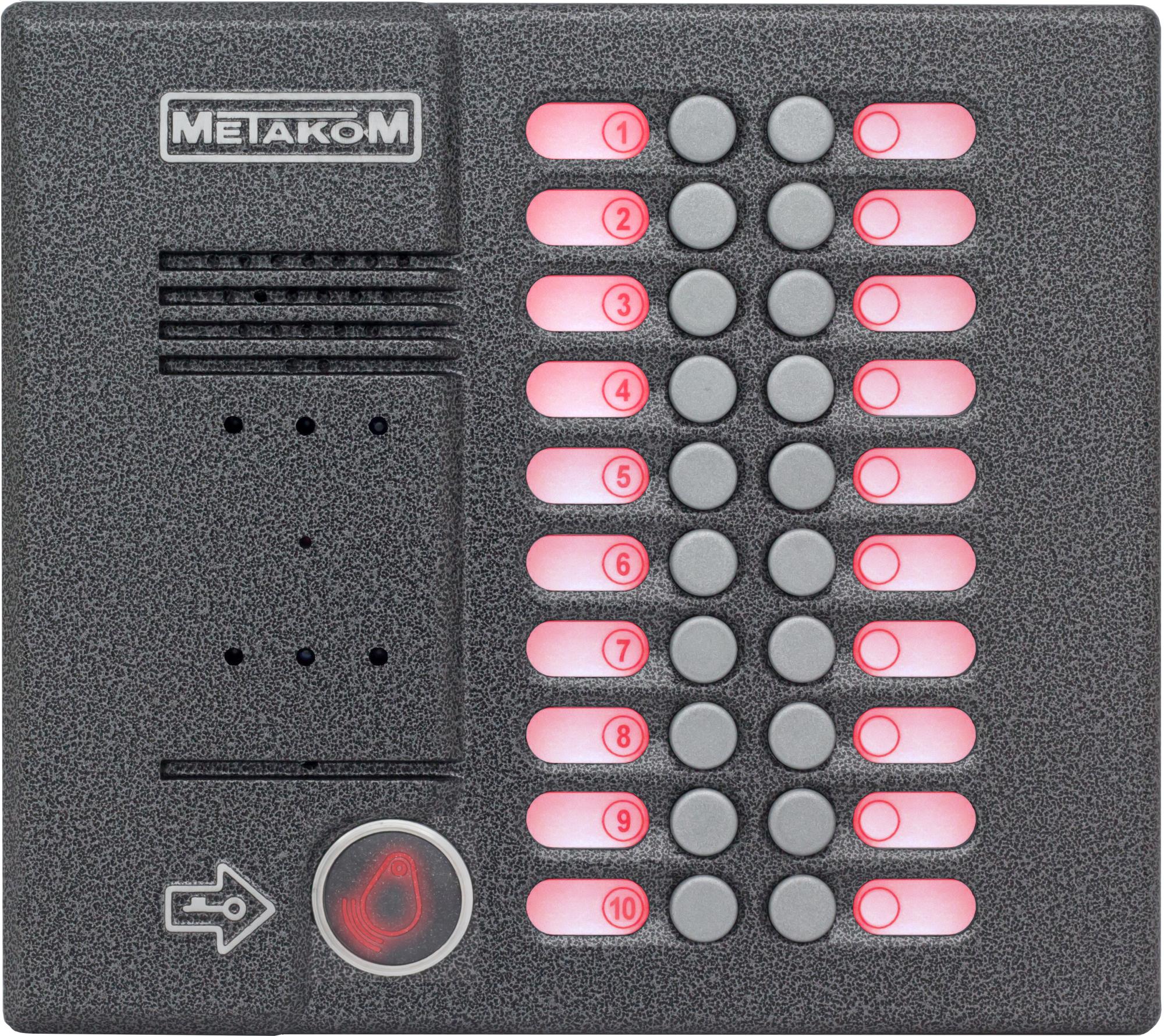 Блок вызова видеодомофона МК20.2-RFEV имеет встроенный считыватель бесконтактных RFID ключей с рабочей частотой 125 кГц. В качестве абонентских ключей используются бесконтактные брелоки METAKOM поддерживающие Proximity технологию, стандарт ЕМ-Marin (RF ключи).