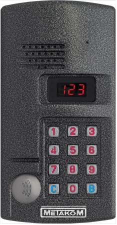 Многоабонентный антивандальный блок вызова МЕТАКОМ MK2003.2-MFEN, емкость абонентов до 999 (при использовании нескольких коммутаторов), работа с бесконтактными брелками, стандарт MIFARE. Возможность организации домофонной сети типа 1 Master / 16 Slave (один основной вход, 16 дополнительных). Данный домофон имеет встроенный считыватель бесконтактных брелков МЕТАКОМ MF, который работает только с брелками МЕТАКОМ MF136. Рассчитан на работу с электромагнитным замком. Габариты: 200х105х45 мм.