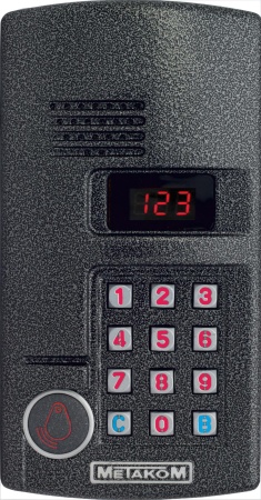 Многоабонентный антивандальный блок вызова МЕТАКОМ MK2003.2-RFE, емкость абонентов до 999 (при использовании нескольких коммутаторов), работа с бесконтактными брелками proximity, стандарт EM-marine. Рассчитан на работу с электромагнитным замком. Габариты:200х105х45мм.