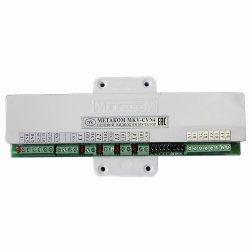 Коммутатор сетевой MKV-CVN4 предназначен для коммутации видеосигнала в домофонных системах на базе блоков вызова Метаком для функционального расширения системы «калитка-подъезд». Позволяет осуществить коммутацию видеосигнала от 4 сетевых блоков вызова MK2012-VN к одной подъездной видеолинии.