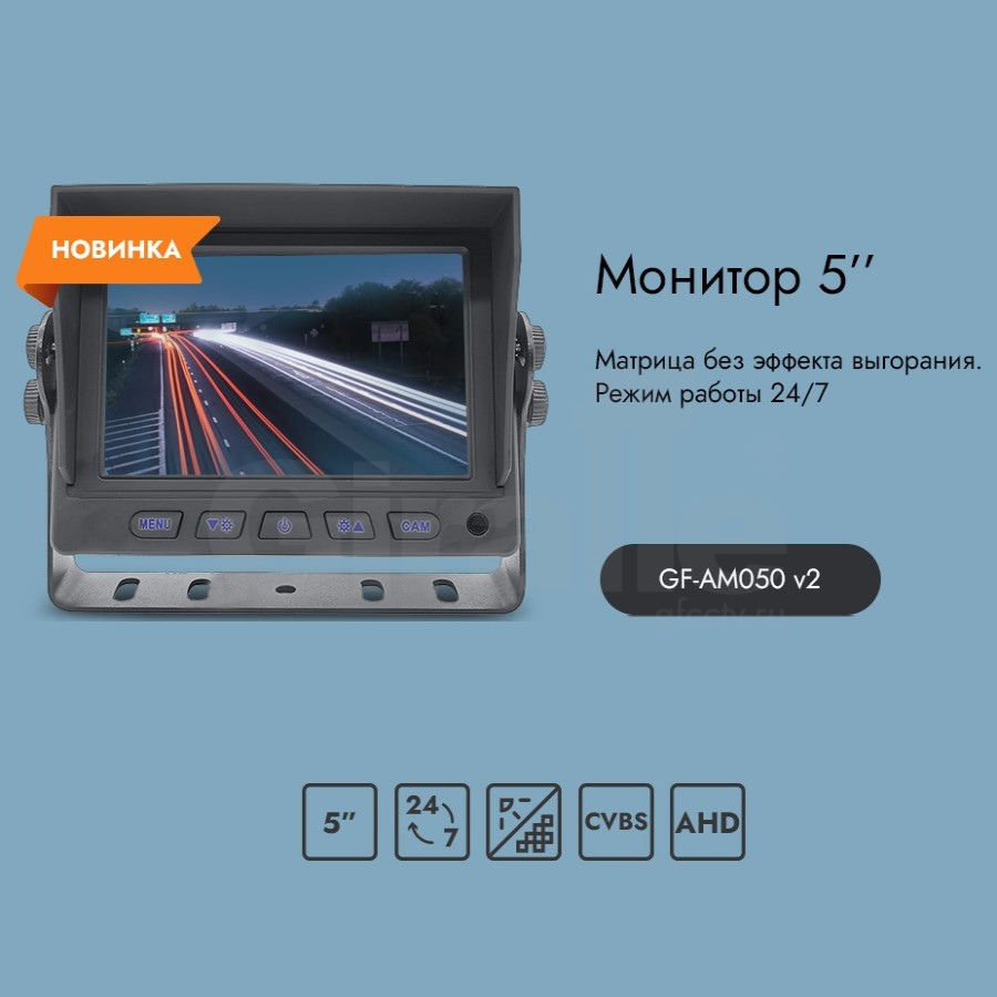 В мониторе GF-AM050 v2 используется специализированная матрица без эффекта выгорания, рассчитанная на работу в режиме 24/7.