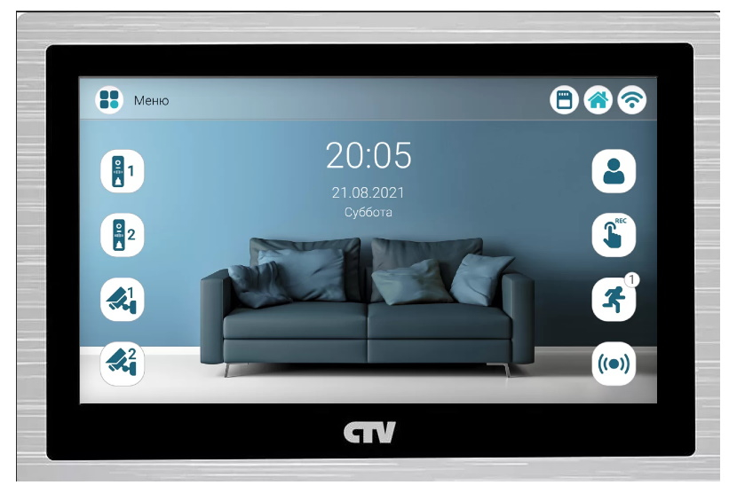 Монитор видеодомофона с 10" сенсорным дисплеем, поддержкой формата AHD и записью в Full HD. С удаленным доступом со смартфона через приложение CTV Home.