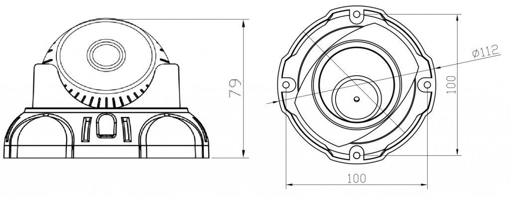 Диапазон рабочих температур от -10° до +50° С. Габаритные размеры камеры ∅ 112 х 79 мм. Питание 12 В.