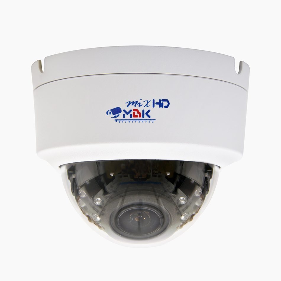 Купольная 1.3 Мп 4-х форматная (AHD/TVI/CVI/960h) видеокамера МВК-МV720 Ball (2,8-12) с функцией день/ночь. Имеет ИК-подсветку (22 диода) с дальностью действия до 20 м. Механический автоматический ИК-фильтр. Камера предназначена для работы внутри помещений.