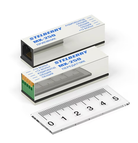 Приёмник и передатчик STELBERRRY MX-250 предназначены для качественной питания микрофонов и передачи аудиосигнала по UTP кабелю без влияния внешних электромагнитных помех в системах видеонаблюдения и аудиорегистрации.