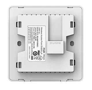 Настенная точка доступа Wi-Fi 5, 1267 Мбит/с, 802.11ac, AC1300, 2 порта FE, питание по PoE 802.3af/at 8Вт, 86 × 86 × 29,3 мм (Подходит для установки в подрозетник) WiFi Точка доступа | Интерфейс: WAN 1×RJ45 10M/100Mbps (PoE In) / LAN 1×RJ45 10M/100Mbps / Wi-Fi 2.4GHz IEEE802.11 b/g/n 400Mbps и 5GHz IEEE802.11a/n/ac 867Mbps | Протоколы: PPPoE, DHCP, Free Cloud Management, Self-organizing Network | Антенна: MU-MIMO Встроенная / Усиление: 2dBi | Пользователи: до 110 клиентов | Облачное управление: Ruijie Cloud | MTBF: >250'000 часов | Типоразмер: Настенный | Цвет: Белый | Питание: PoE IEEE 802.3af/at ≤8W | Температура: 0°C...+40°C | Вес: 0.05кг | Размер: 86×86×29.3мм