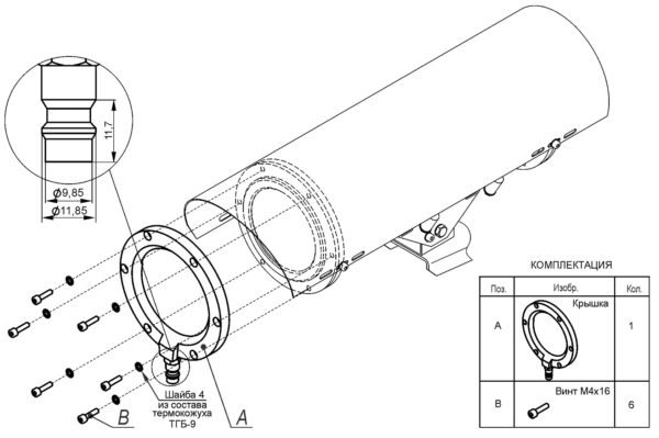 Устанавливается на термокожухи ТГБ-9, ТГБ-9У, и на видеокамеры на базе данных термокожухов.