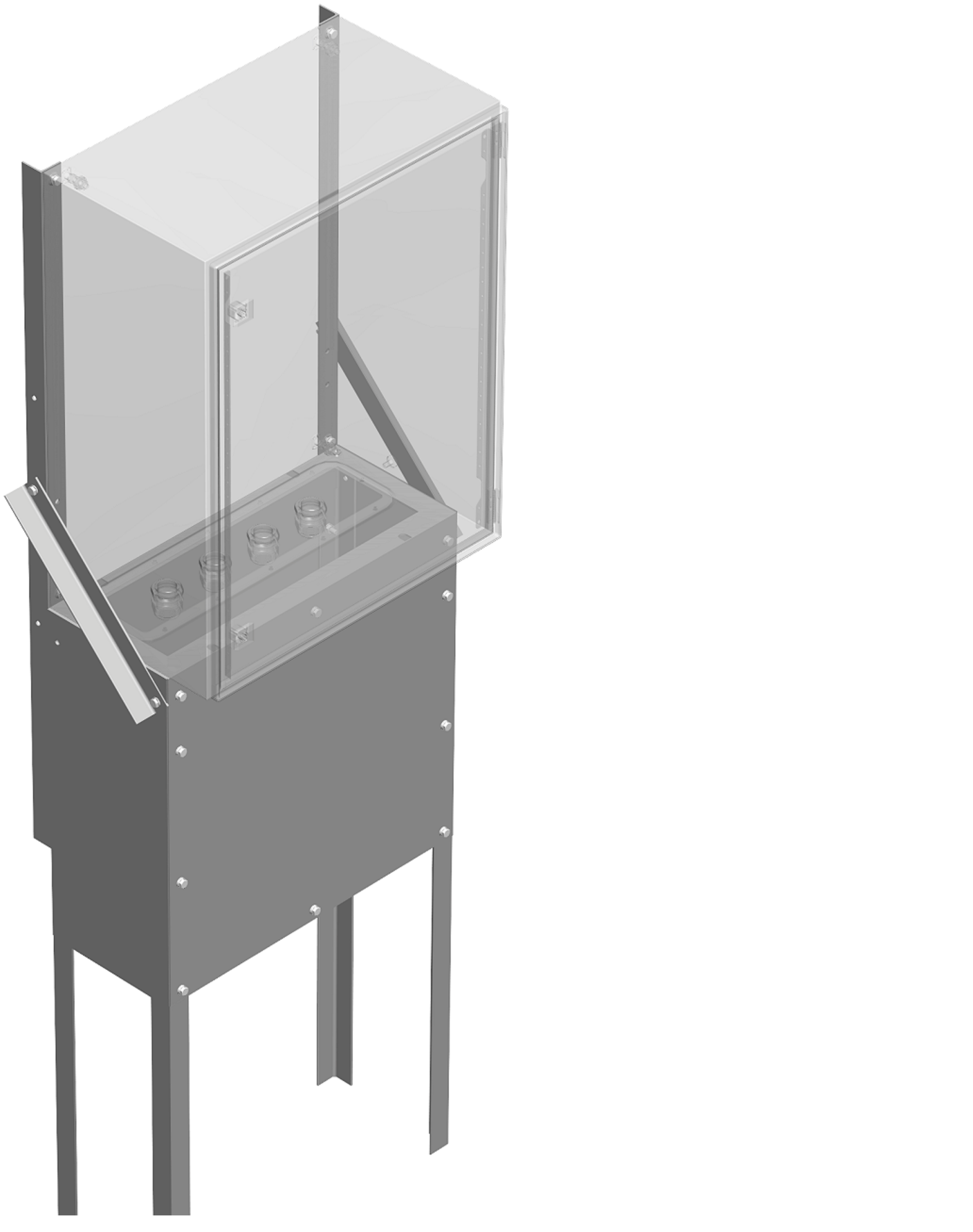 Основание ОНШ-2 напольного исполнения предназначено для установки шкафов ТШ-1, ТШ-2, ТШ-5, ШПУ-1, ШПУ-2Т вне помещений. Основание представляет собой сборно-сварную конструкцию собранную из металлического уголка размером 40х40х3 мм и стального листа толщиной 1,5 мм. Основание имеет съемные крышки люка для обеспечения доступа к кабельным вводам устанавливаемого шкафа. Основание заглубляется в грунт на глубину не менее 550 мм и бетонируется. Сверху на основание с помощью болтов (только шкаф ТШ-5), либо болтов и уголков (шкафы ТШ-1, ТШ-2, ШПУ-1, ШПУ-2Т) закрепляется шкаф.
