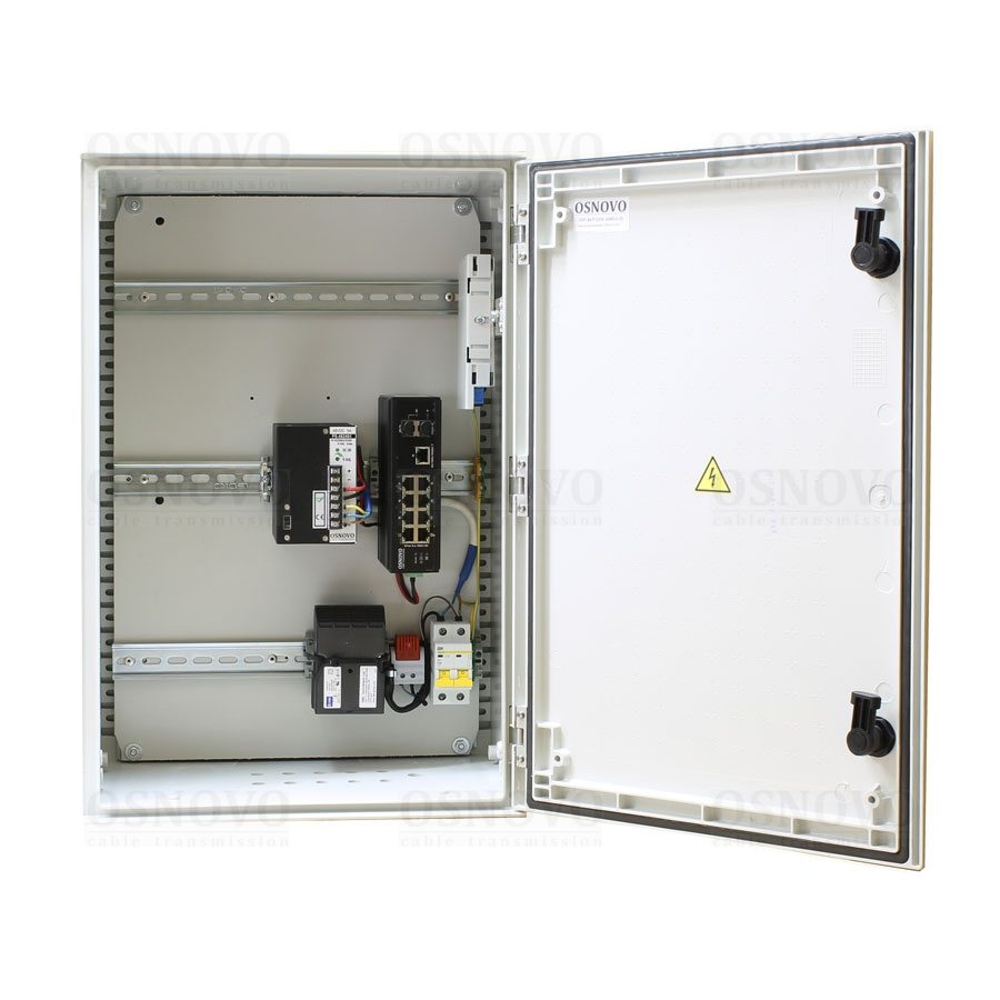 OSP-46T1(SW-60812/I) Уличный коммутатор с термостабилизацией на базе уличной станции OSNOVO OSP-46T1. Порты: 6 x FE (10/100Base-T) с PoE (до 30W) + 2 x FE (10/100Base-T) с PoE (до 60W) + 1 x GE (10/100/1000Base-T) + 2 x GE SFP (1000Base-X). Режим антизависания и режим CCTV (удлинения линий связи по 8-ми PoE портам до 250м (скорость до 10Мбит/с)).