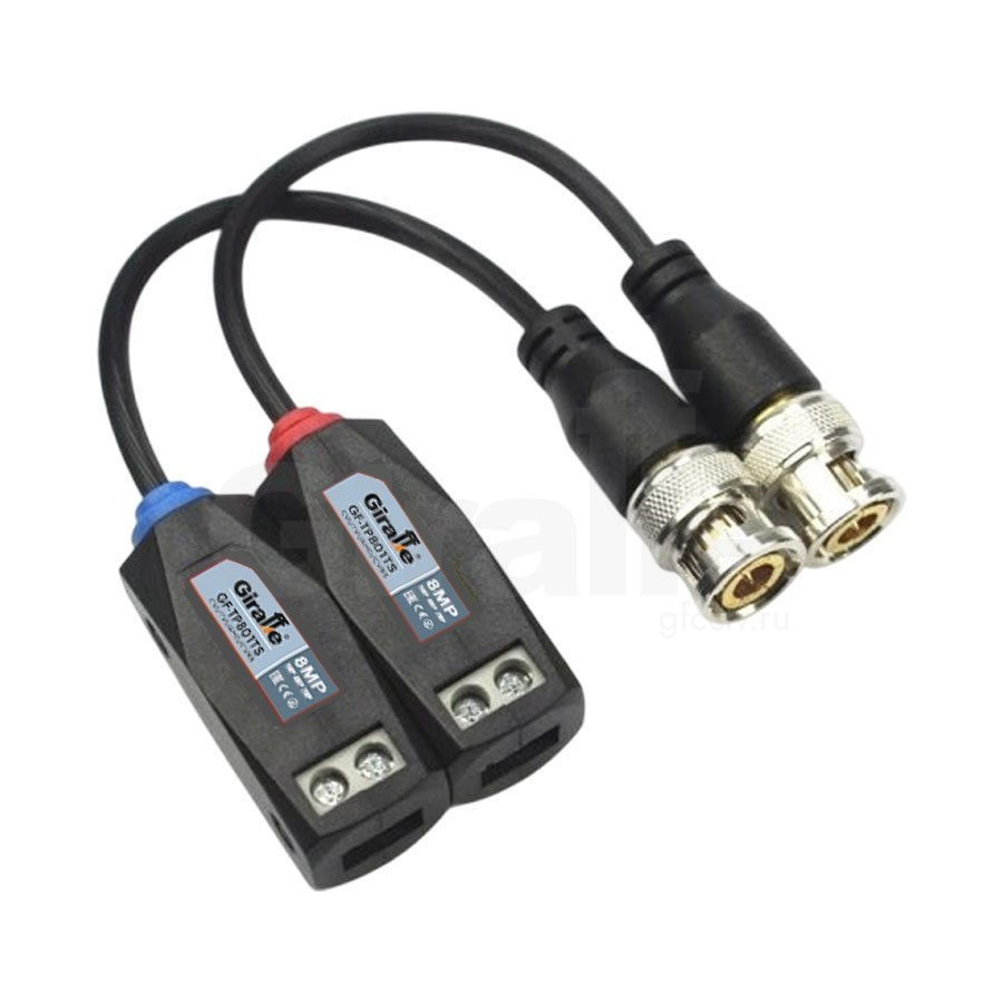 GF-TP801TS подключается к устройствам системы видеонаблюдения (видеокамера, видеорегистратор, и т.п.) посредством разъема BNC, к витой паре кабеля UTP – при помощи клеммной колодки «под зажим».