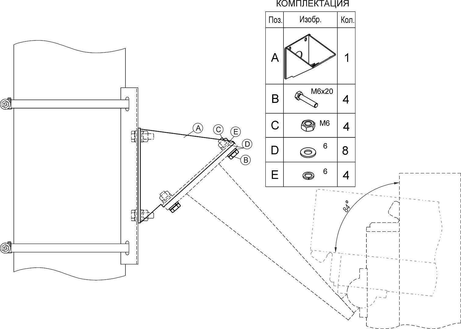 Переходник кронштейна ПК-100 исп.48 предназначен для крепления кронштейнов типа КТ, КТУ, КТУН и позволяет увеличить угол наклона видеокамеры до 90°.