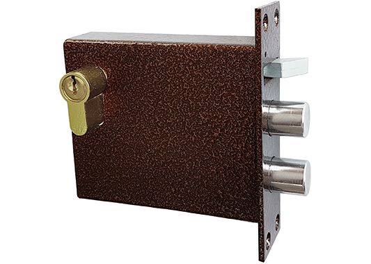 Улучшенная система автоматического взвода замка обеспечивает уменьшенное и постоянное усилие взвода замка, что позволяет использовать его совместно с доводчиком двери. Механическая задержка вылета засовов исключает ситуацию, когда выходящие из замка засовы препятствуют закрыванию двери. Переворотный кулачок позволяет устанавливать замок как на правую, так и на левую дверь.