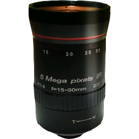 Объектив PRO-023M1530MP5IR с 5-ти мегапиксельным разрешением. ИК-коррекция позволяет автоматически переключаться с дневного режима в ночной. Объектив с переменным фокусным расстоянием 15-30 мм. Формат матрицы 2/3". Относительное отверстие F1.5. Фокусное расстояние объектива можно регулировать в ручную, что позволяет произвести точную настройку. Управление диафрагмой ручное. Используется тип крепления - C.