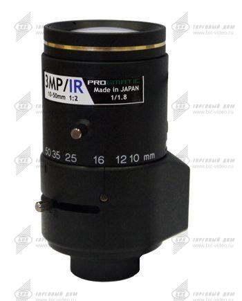 Объектив PRO-18M1050MP3IR - вариофокальный с ручной регулировкой диафрагмы. ИК коррекция. Разрешение объектива - 3 MPix. Возможность изменять вручную фокусное расстояние. Изменяемое фокусное расстояние f=10,0-50,0 мм с форматом матрицы 1/1,8'', тип крепления - C-mount. Горизонтальный угол обзора - 40,53-8,49.
