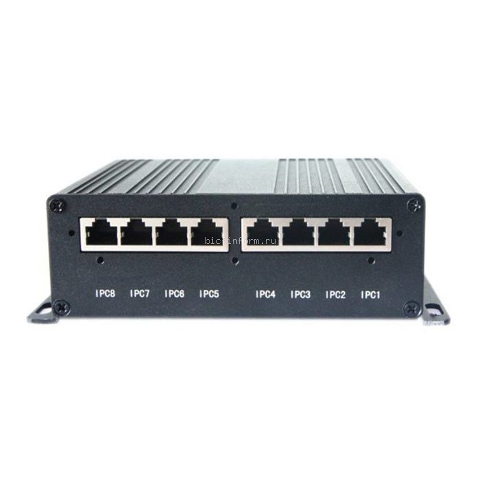 PoE коммутатор для транспорта на 8 портов PRO-MSW8M1GPOE. Поддерживает подключение до 8 IP-камер с питанием по стандарту POE (до 7Вт на канал). Диапазон питания 8-36V DC. 1 порт на передачу данных 10/100/1000M (Up-link port). 8 портов на получение данных 10/100M (Down-link port). .Тип коннекторов: RJ45.