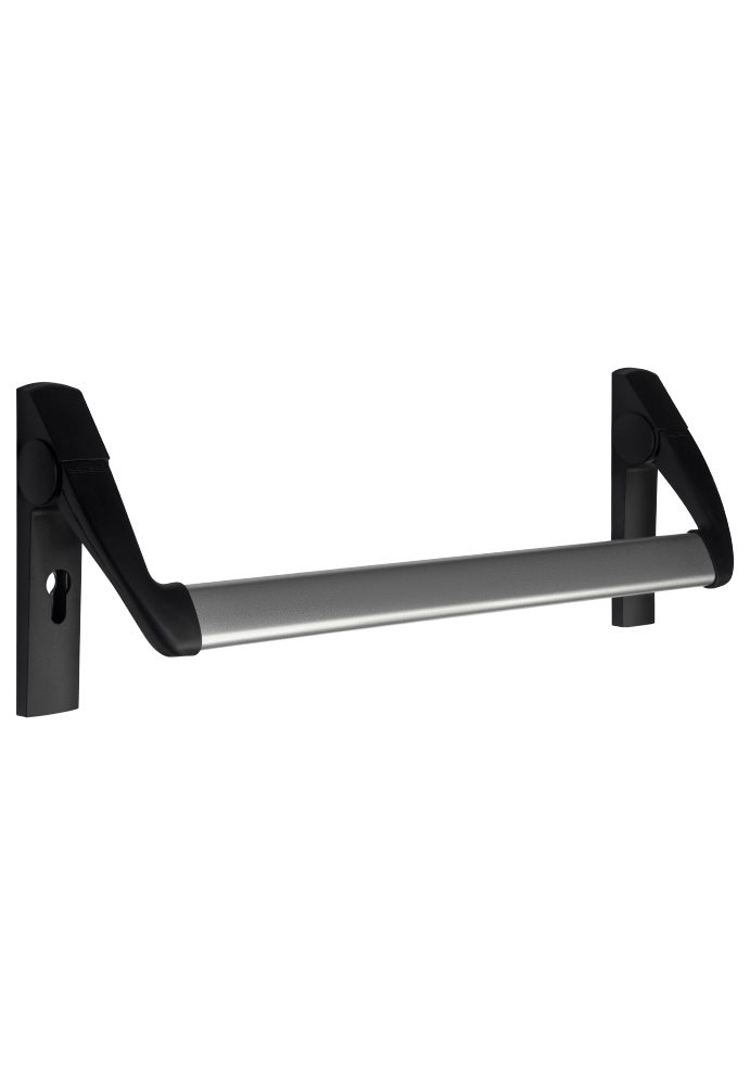 Устройство экстренного открывания эвакуационных выходов ручка-штанга нажимная AP-1300A, удерживающая дверь эвакуационного выхода в закрытом (запертом) положении и обеспечивающая быстрое открывание двери одним движением (нажатием рукой или телом человека на нажимную ручку-штангу) при возникновении чрезвычайных ситуаций, расположенная на внутренней стороне полотна дверного блока по ходу направления эвакуации. Используется вместе с врезным замком, ручкой на планке и цилиндровым механизмом (не входят в комплект поставки).