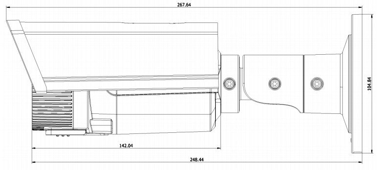 Габаритные размеры устройства 248,4 х 92,4 х 87,7 мм. Диапазон рабочей температуры от -40° до +50° С. Питание 12 В, поддерживает PoE.