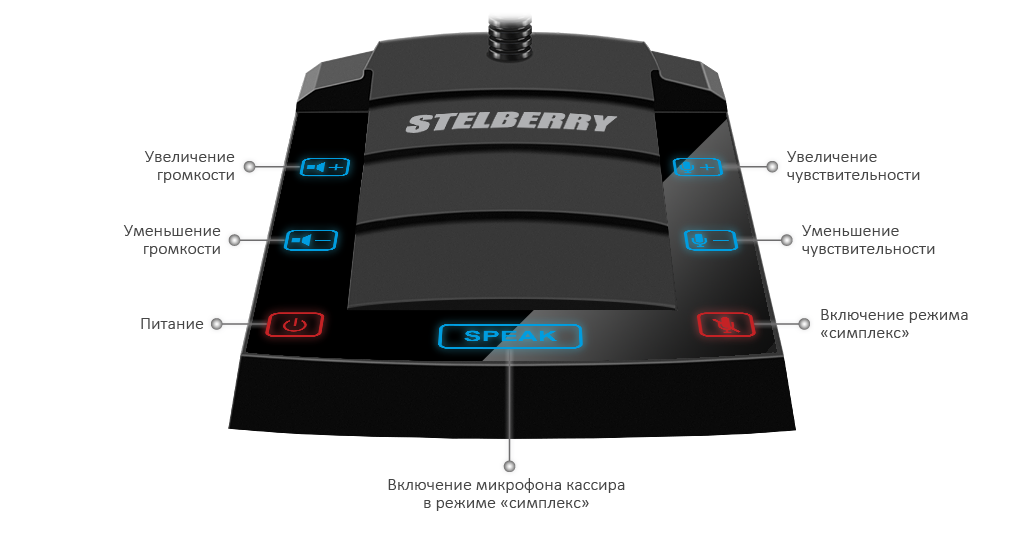 Устройство простое в использовании, успешно сочетает в себе инновационный дизайн, высокое качество звука, богатый набор функций и низкую стоимость. Все эти особенности качественно отличают устройство STELBERRY S-410 от его аналогов. Корпус панели изготовлен из высокопрочного алюминиевого сплава, что обеспечивает ей хорошую вандалозащищенность. Микрофон обладает высокой чувствительностью, обеспечивающей хорошее качество звука, даже если оператор находится на расстоянии от устройства. На пульте имеется кнопка отключения микрофона кассира, кнопка "SPEAK", регулировка громкости и чувствительности микрофона.