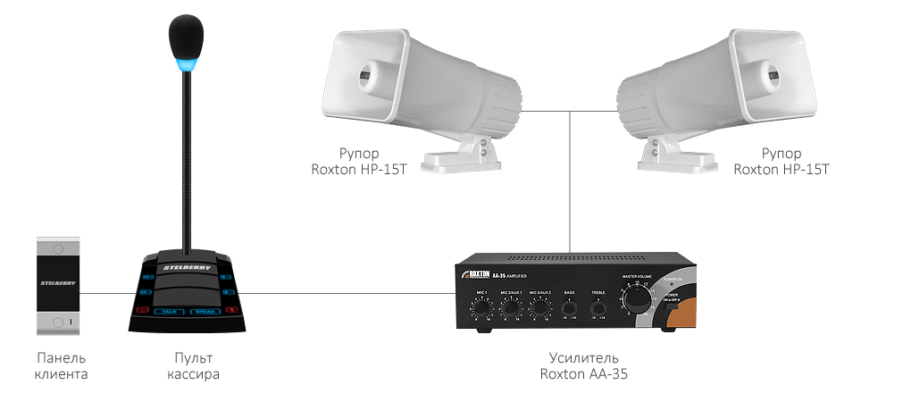 STELBERRY S-510 Переговорное устройство "клиент-кассир" с функцией громкого оповещения и режимом "СИМПЛЕКС"