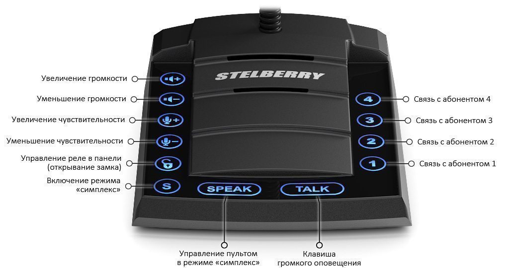 Кнопки управления дуплексным переговорным устройством STELBERRY S-740