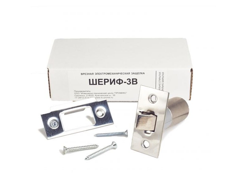 Врезной электромеханический замок ШЕРИФ-3В НО Д с датчиком состояния замка. Предназначен для запирания распашных дверей, ворот и калиток, с возможностью их дистанционного открывания с помощью контроллеров систем контроля и управления доступом, аудио- и видеодомофонов, кодовых панелей. Замок имеет цилиндрическую форму, что значительно упрощает его установку - достаточно просверлить отверстие диаметром 24 мм и вставить в него замок. Замок нормально открытого исполнения - находится в открытом состоянии при отсутствии напряжения питания и в закрытом при подаче напряжения питания. Встроенный датчик состояния замка, реализованный на базе магнитоуправляемого герметизированного сухого контакта. Датчик информирует о состоянии положения язычка замка. Может устанавливаться снаружи помещения при условии, что в зимнее время года большую часть времени находится в закрытом состоянии (подано напряжение питания). Малый ток потребления. Сила удержания не менее 300 кг.