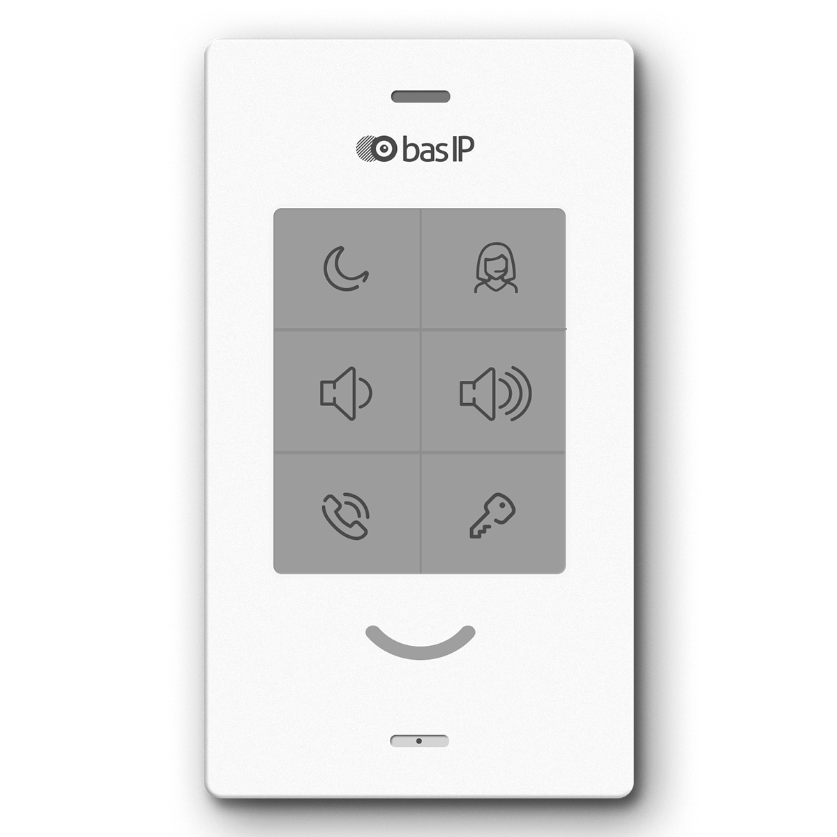 Оснащен кнопками для быстрого вызова консьержа, открытия замка, управления режимом "Не беспокоить", электронной регулировки громкости, 6 уровней. Цвет корпуса: белый, черный.