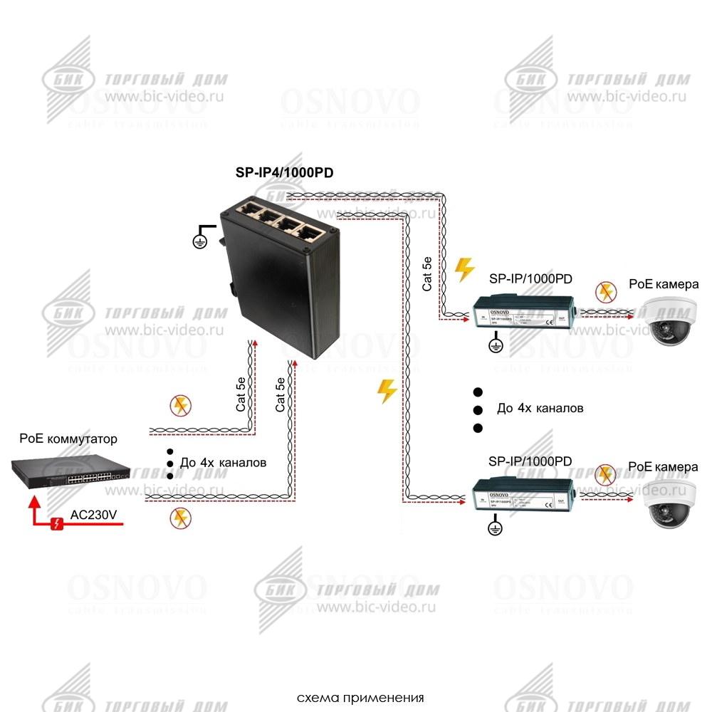 Устройство грозозащиты для локальной вычислительной сети на 4 порта (скорость до 1000 Мбит/с) с защитой линий PoE (802.3 af/at/bt, методы A + B, контакты 1/2, 3/6, 4/5, 7/8) Двухступенчатая защита. Максимальное длительное рабочее напряжение (Uс) DC57V. Номинальный ток разряда (8/20 мкс, In) 2,5kA. Суммарный ток разряда (8/20 мкс, Itotal) 10kA. Время отклика 1нс. 4 входа (RJ-45), 4 выхода (RJ-45). Монтаж на DIN-рейку. Размеры (ШхВхГ): 30x90x83мм. Рабочая температура: -40…+80°С.