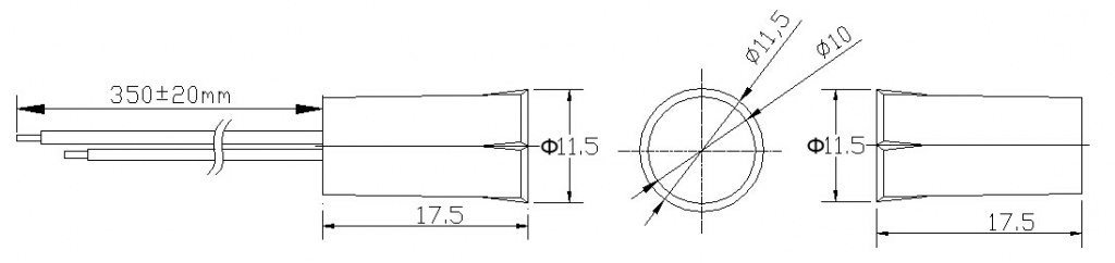Габаритные размеры устройства Ø10 х 18 мм. Диапазон рабочих температур от -30° до +65° С.