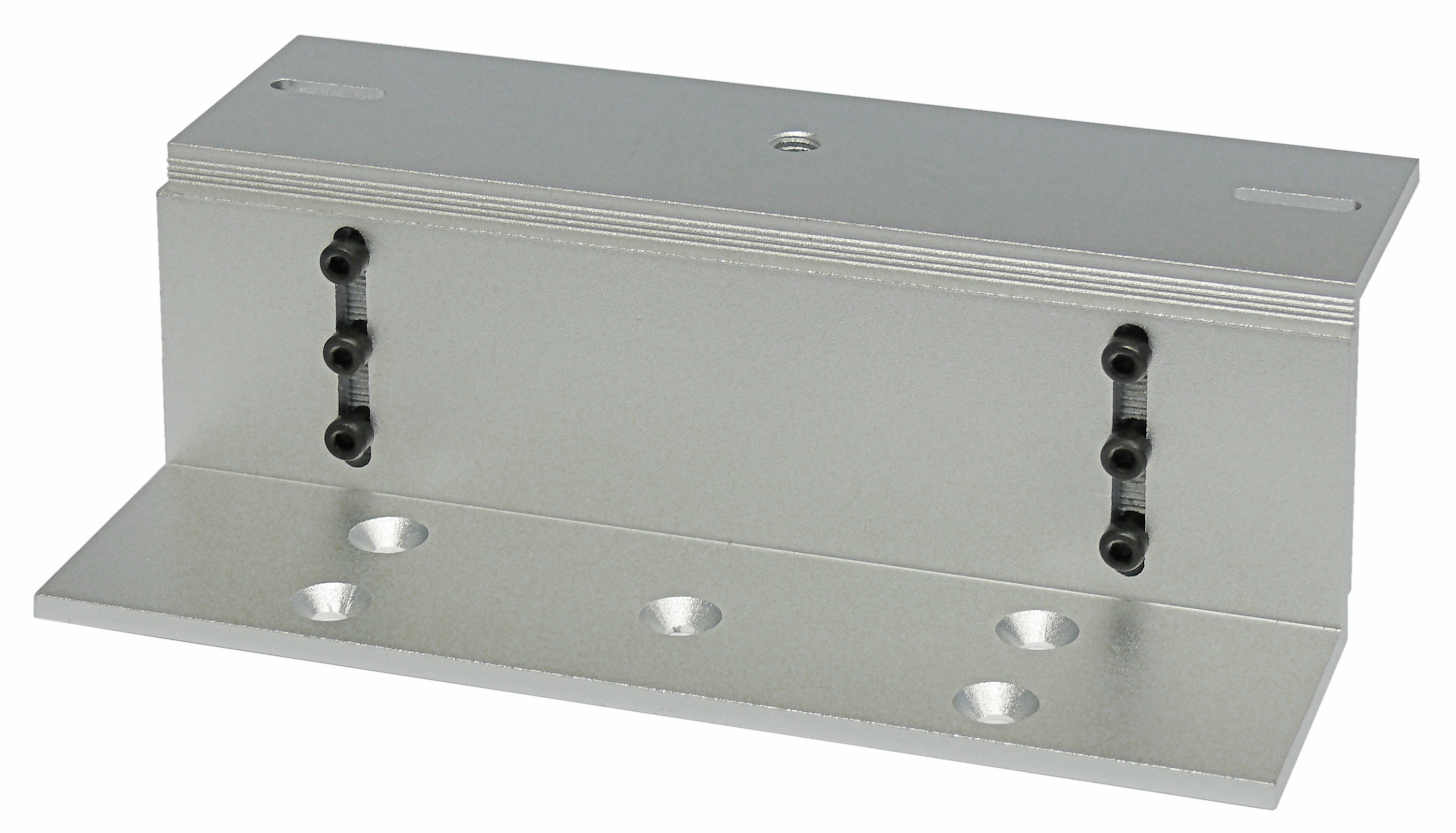 Кронштейн Z типа выполнен из алюминия и предназначен для крепления якоря электромагнитных замков на двери, открывающиеся внутрь.