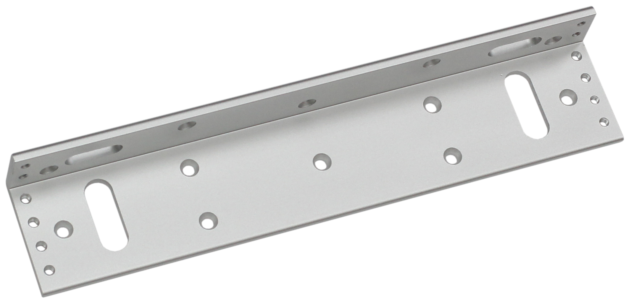 Кронштейн L типа выполнен из алюминия и предназначен для крепления электромагнитных замков на двери, открывающиеся наружу, когда ширина дверной коробки не допускает непосредственный монтаж замка.