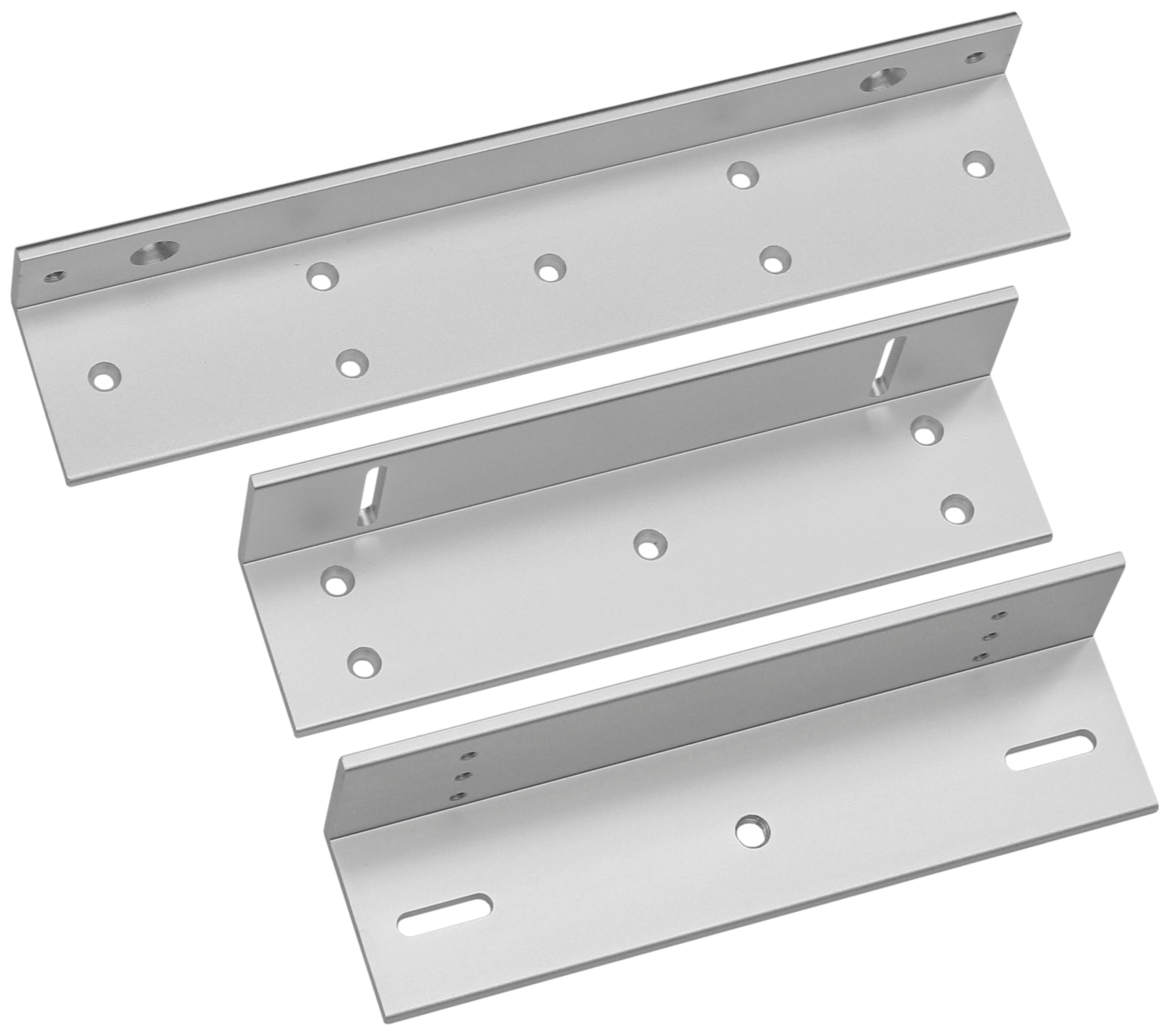 Комплект кронштейнов L и Z типа выполнен из алюминия и предназначен для крепления электромагнитных замков на двери, открывающиеся внутрь.