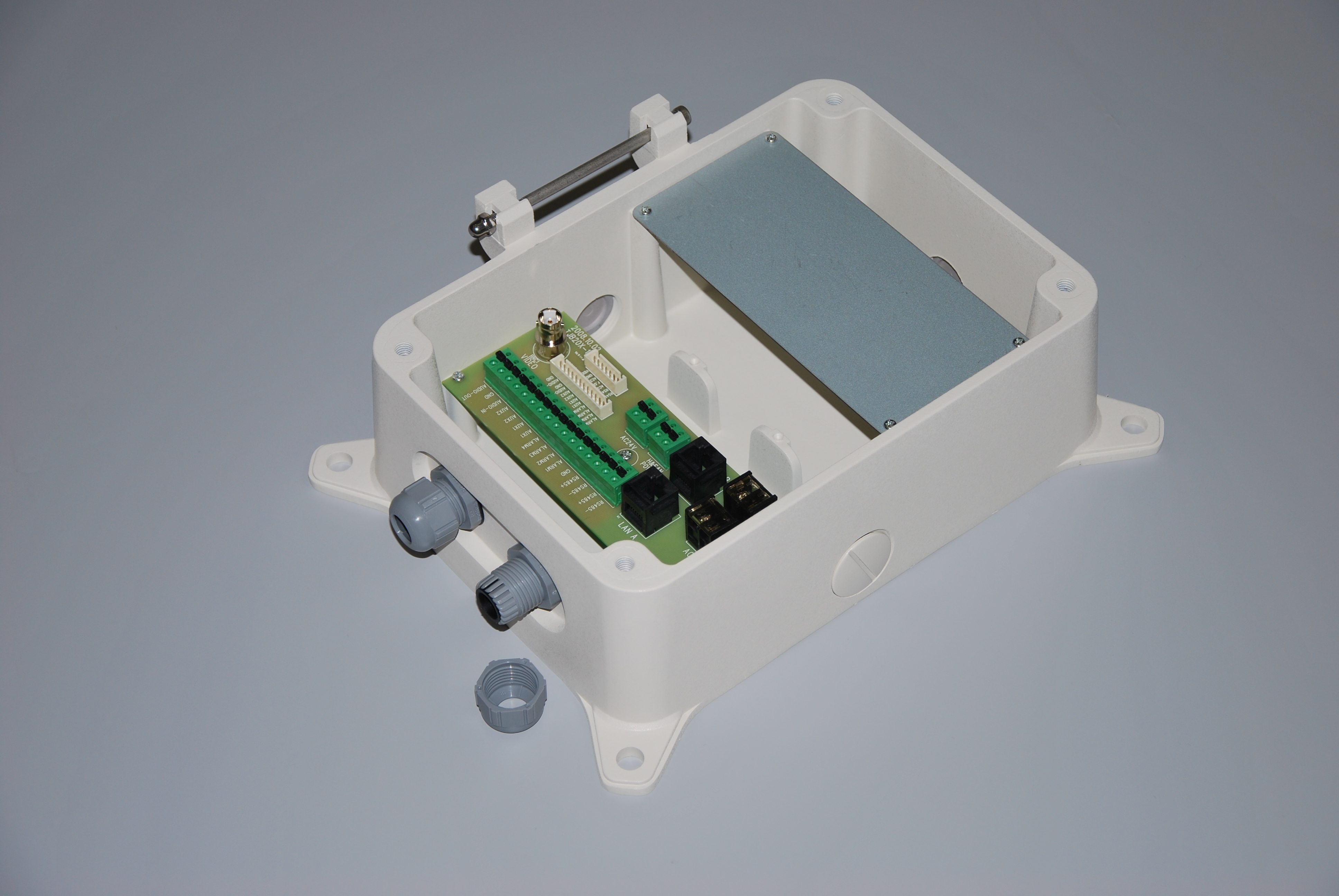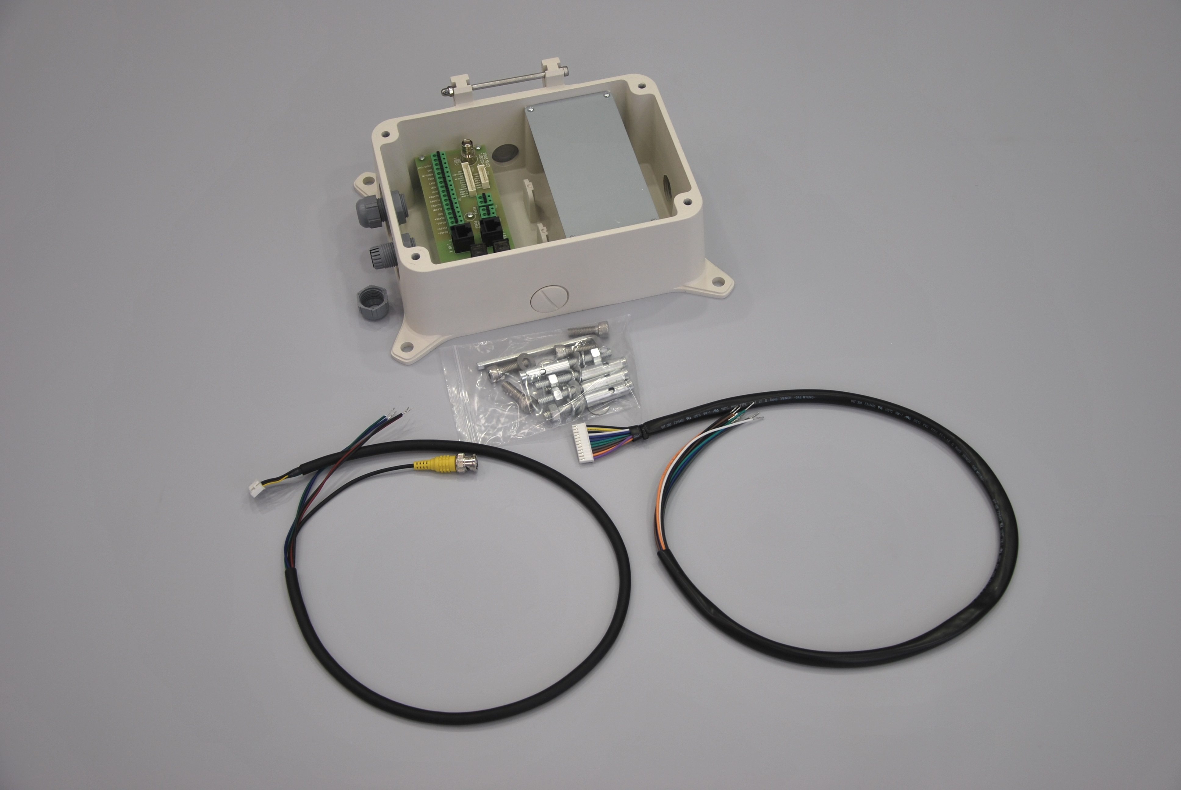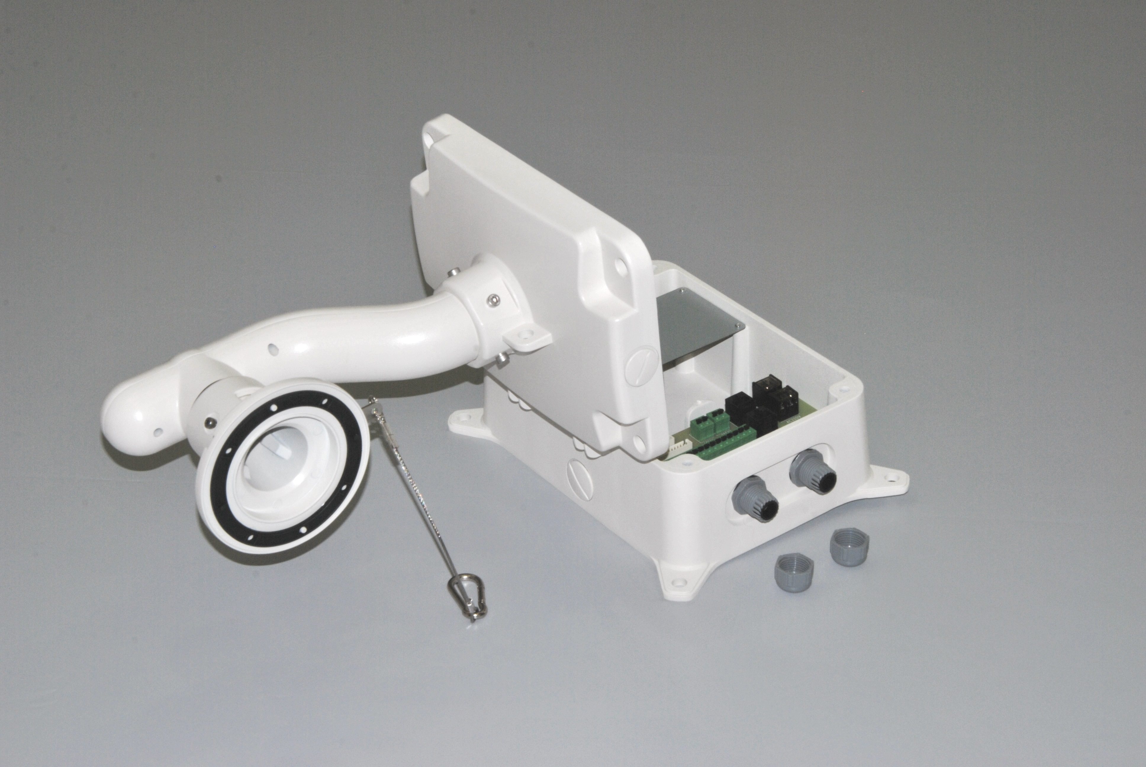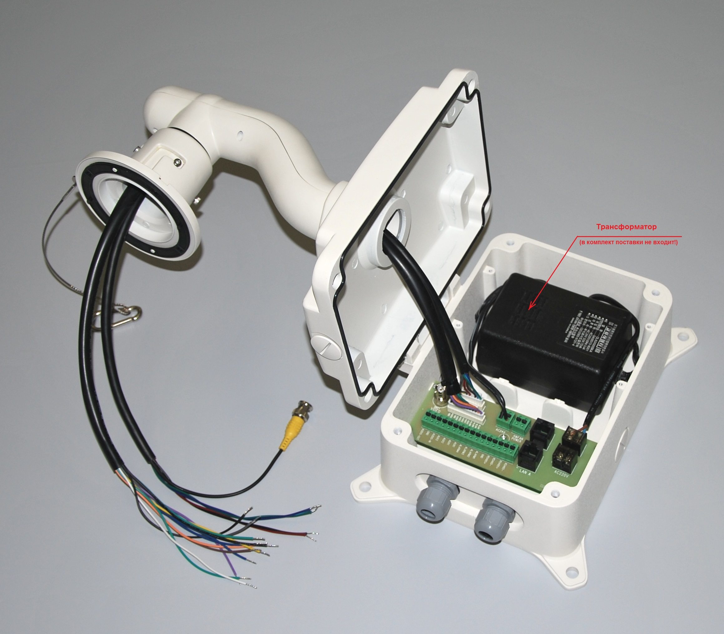 Коммутационная коробка STB-C307 для совместного использования с кронштейнами STB-C301INT, STB-C302INT, STB-C304OUT, STB-C305OUT. Кронштейны и трансформатор (представленные на фото) в комплект поставки не входят.