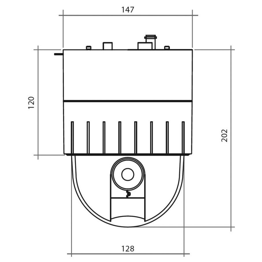 Габаритные размеры устройства: 128 х 202 мм. Диапазон рабочих температур от - 10°С до +50°С (от -40 при использовании кожуха STB-C103). Питание 24 В пер. тока.