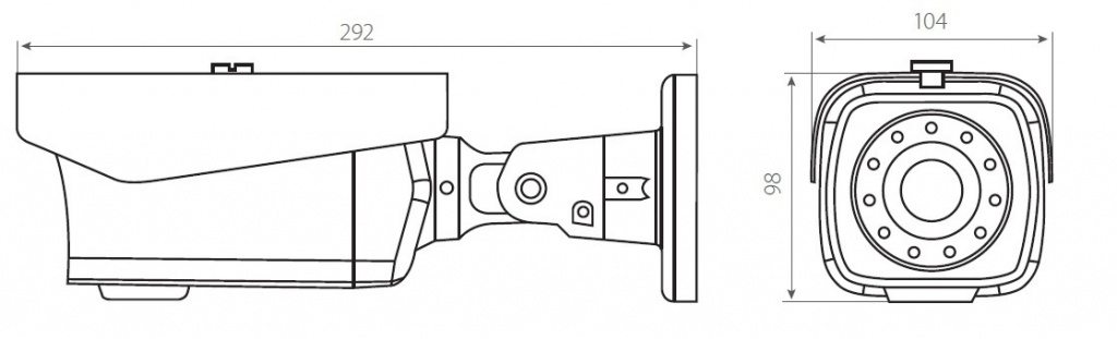 Габаритные размеры устройства 104 х 98 x 292 мм. Диапазон рабочих температур от -40 °C до +60 °C. Питание 12 В, PoE.
