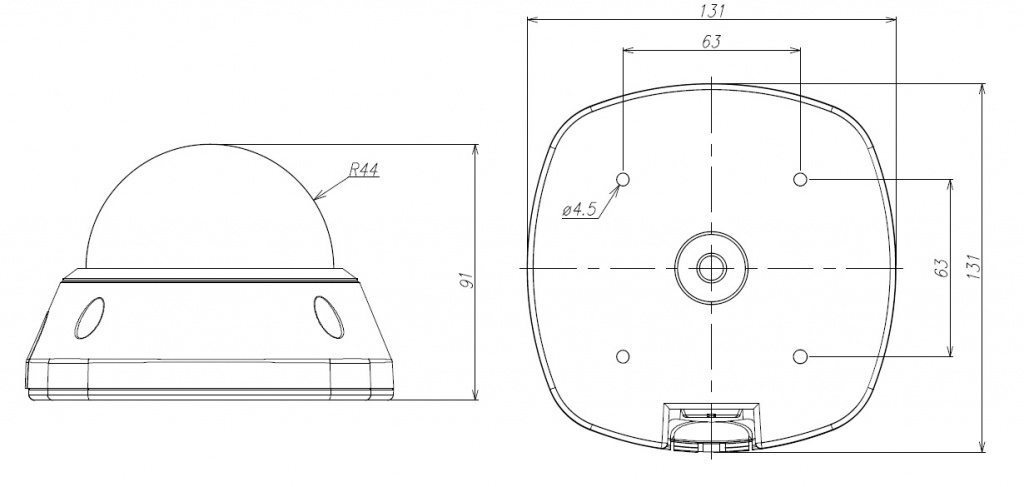 Рабочая температура от -5° до +45° С. Габаритные размеры ø131 х 90 мм. Питание 12 В, поддержка PoE.