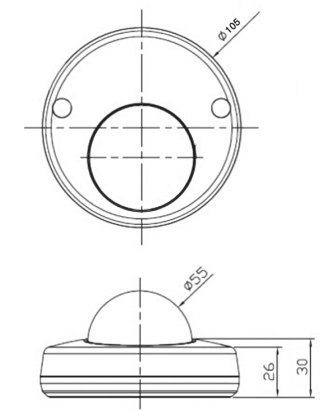 Габаритные размеры устройства Ø105 x 30 мм. Диапазон рабочих температур от 0 °C до +40 °C. Питание PoE.