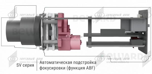 Благодаря функции ABF любой объектив с типом крепления CS, установленный на SV2016M, превращается в объектив с автофокусом. Управляя моторизованным приводом посредством программного обеспечения либо через веб-браузер можно удаленно менять положение матрицы, подстраивая таким образом фокусировку изображения максимально точно. Данный функционал позволяет как устранить человеческий фактор, то есть ошибки настройки фокусировки при монтаже, так и использовать технические преимущества камеры высокого разрешения по максимуму.