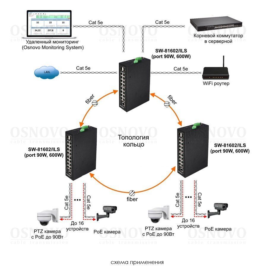 SW-81602/ILS(Port 90W, 600W) Промышленный управляемый (L2+) HiPoE коммутатор.
