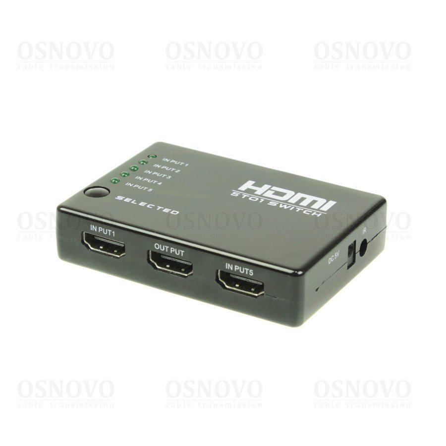 SW-Hi5012 Коммутатор сигнала HDMI (5вх./1вых.) с поддержкой HDMI 1.4, HDCP 1.2. Разрешение до 4Kx2K(30Гц). Вх. - HDMI(A)x5/Роз.1,7х4мм(DC5V). Вых. - HDMI(A). В комплекте пульт управления.